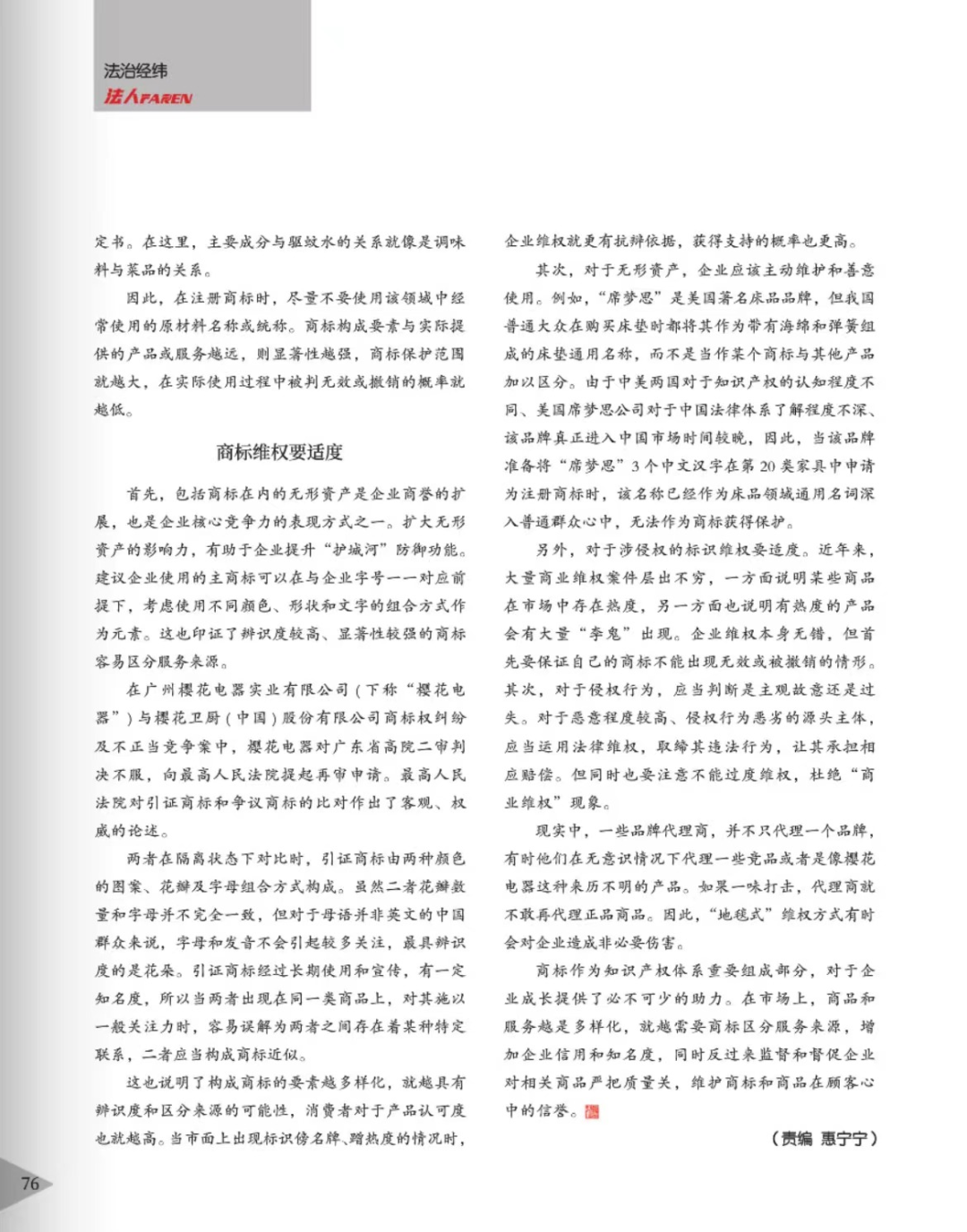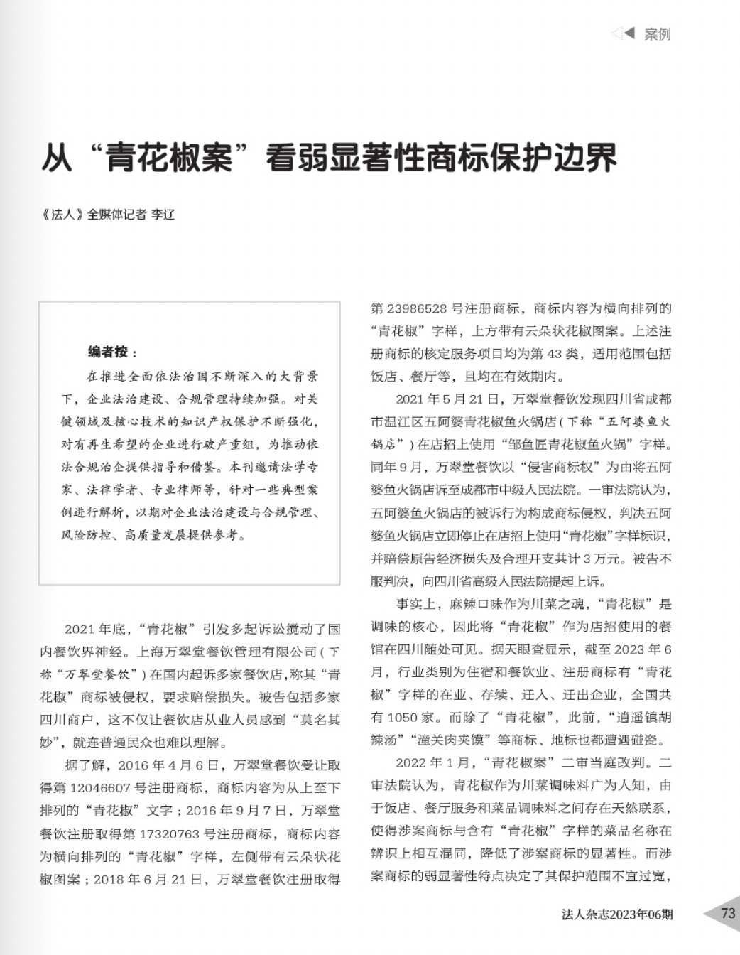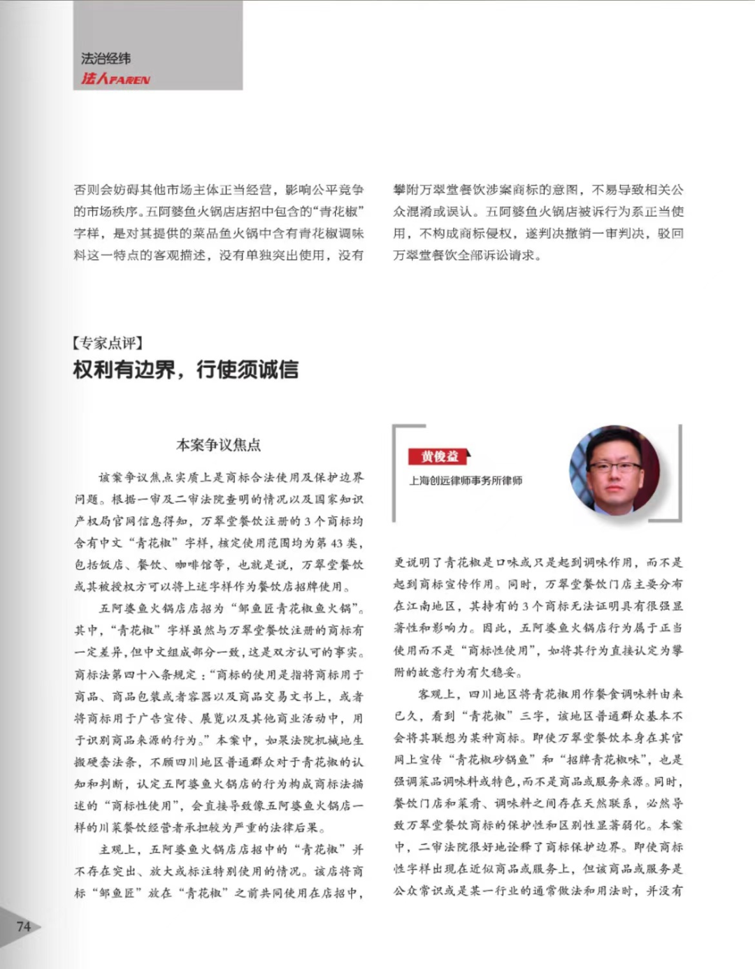 金昌辉知简讯 | 辉知队黄俊益律师应“法治日报”旗下杂志邀请,就“青花椒”案发表专家点评